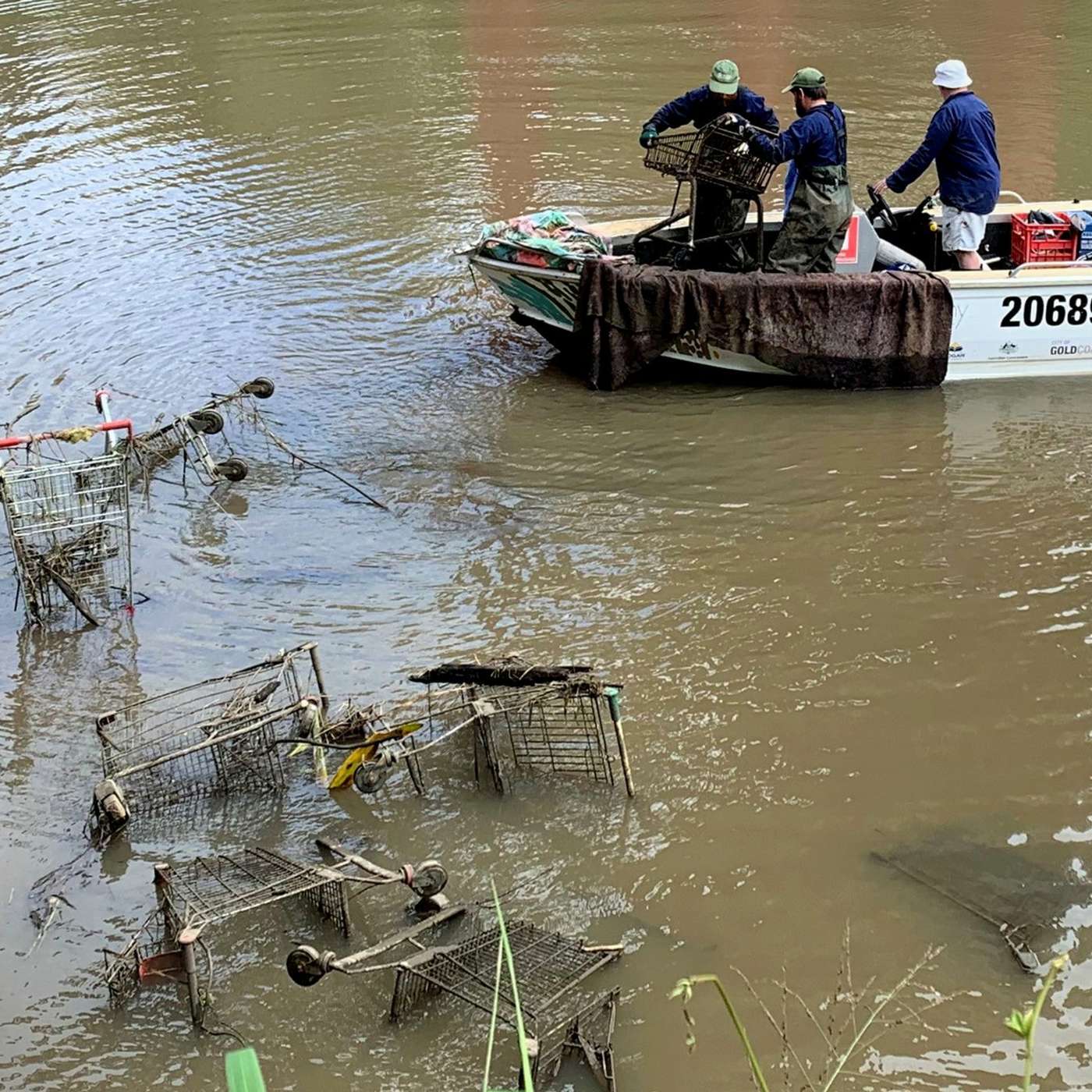 Image: Shopping trolleys being cleared from the Bremer River (supplied)