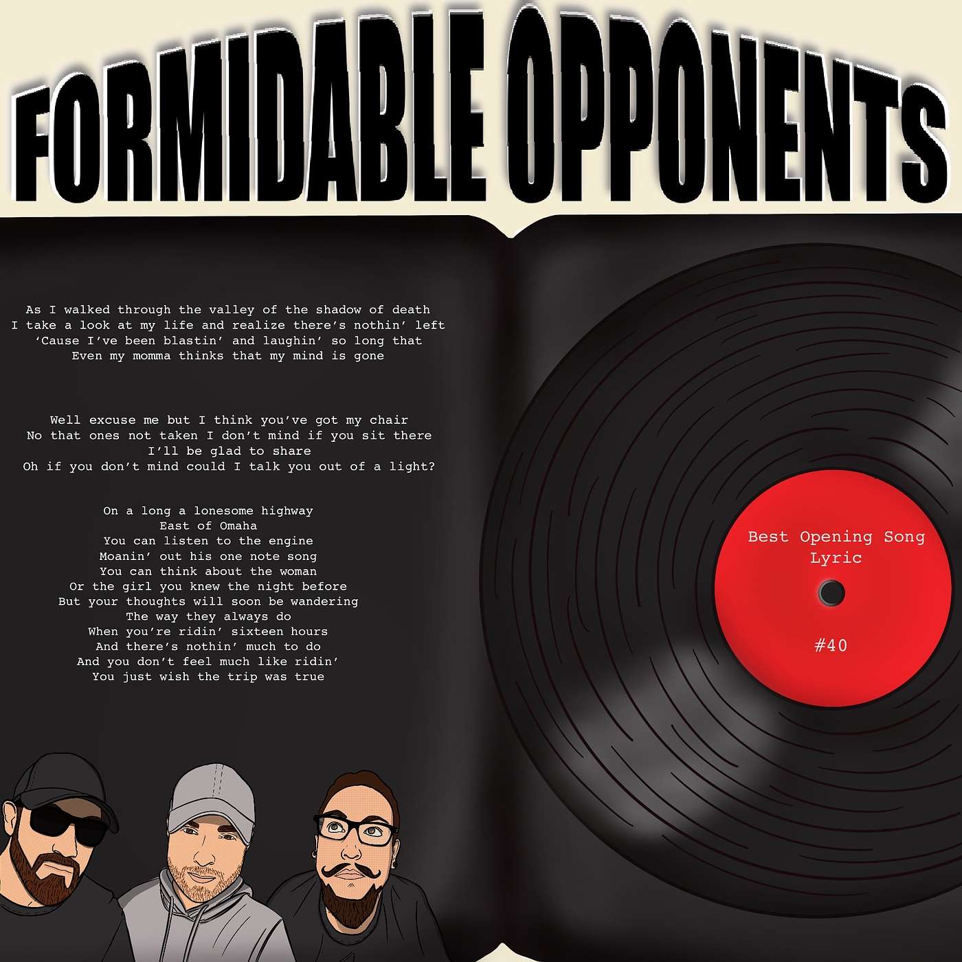 Send us a message and get a shoutout!Now that our break is over and we're forcefully responding to each others' texts again, it's good to know that heading into year two, we still have such a fun time and a passion for this. Quick disclaimer: We recorded this at noon on Sunday 1/16. We usually record Sunday night but Joseph felt if the Dallas Cowboys lost their playoff game, he wouldn't be in the mood to record. Luckily, he prepared for the worst (we'll be sure to give him plenty of grief next episode). So, as we kick off our first podcast of 2022, we decided to go with something new, and welcoming, something that starts this year off right. There is nothing more satisfying than when that opening lyric starts up a song that immediately and forever connects you to the piece. Join Formidable Opponents this week as we kick off 2022 and discuss, "Best Opening Song Lyric." Reach out to us and follow us:formidableopponents@gmail.com (Contact)https://formidableopponents.buzzsprout.com/ (Website)@Fopponents (Twitter)formidable_opponents (Instagram)FormidableOpponents (Facebook)https://www.buymeacoffee.com/foropponentsCover art by Creative Little Pillhttps://www.instagram.com/creativelittlepill/Want a refreshingly different web hosting experience?www.pair.com Support the showReach out to us and follow us:formidableopponents@gmail.com (Contact us)https://formidableopponents.buzzsprout.com/ (Website)@Fopponents (Twitter)formidable_opponents (Instagram)FormidableOpponents (Facebook)@formidableopponents (Tik Tok)https://www.buymeacoffee.com/foropponents (Show us some love)Merchandisehttps://formidableopponents.creator-spring.com/Cover art by Creative Little Pillhttps://www.instagram.com/creativelittlepill/https://creative-little-pill.creator-spring.com/Magic Mindhttps://www.magicmind.com/opponents