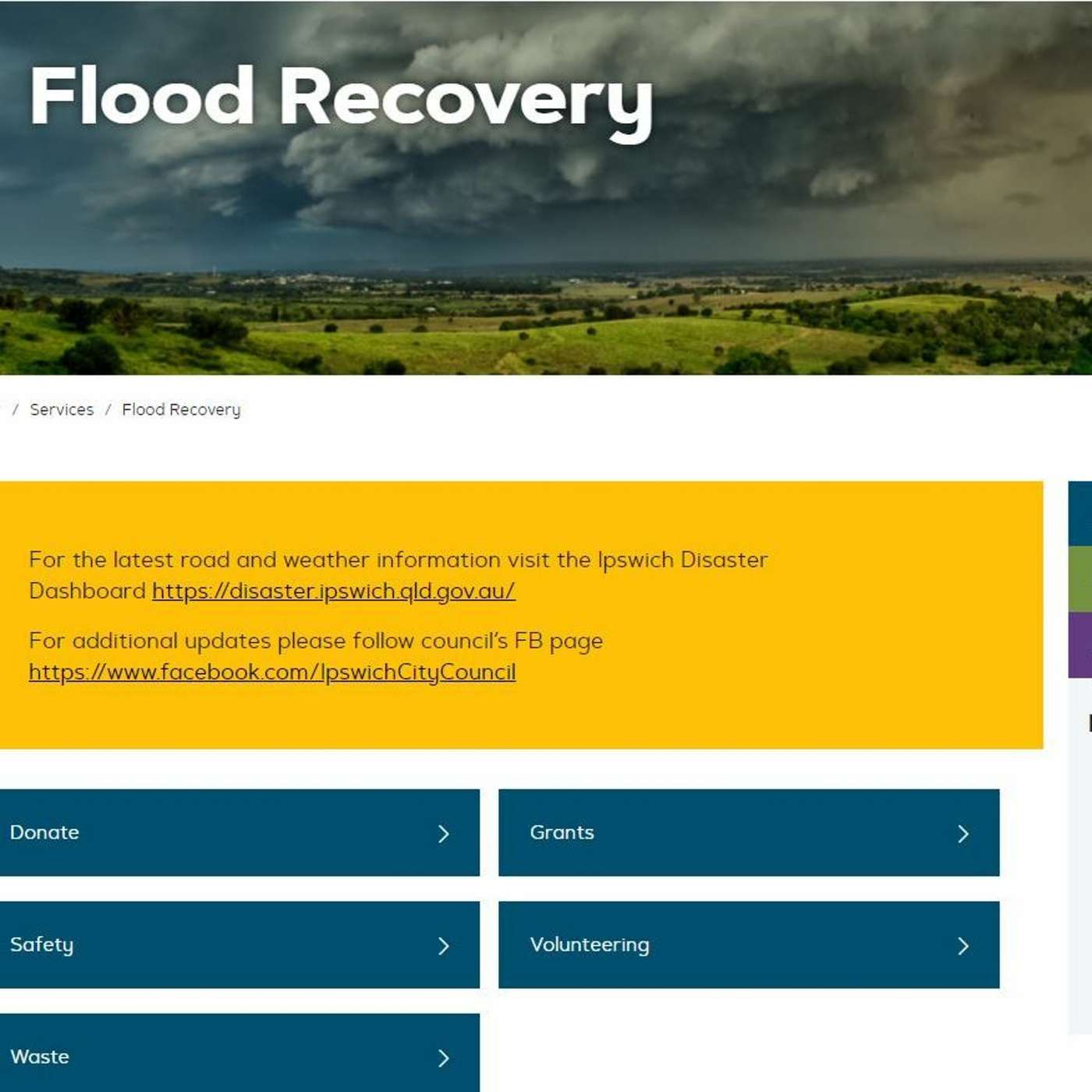 Image: Screenshot of Ipswich City Council flood recovery page (supplied)