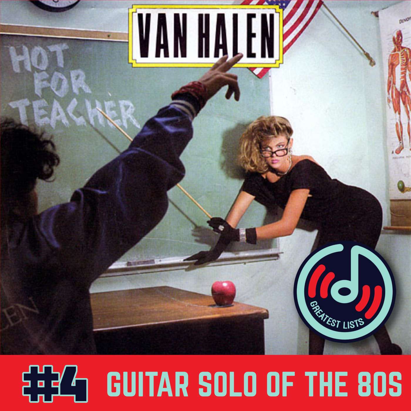 This week's #4 pick in the Top 25 Guitar Solos From The 80's comes from Jason. He chose "Hot For Teacher" from Van Halen. Listen to get the scoop on the song's history and the hosts' review. To find the song on your favorite music service, use the link below:https://songwhip.com/van-halen/hot-for-teacherThis week's first bonus bonus song is "Drop Dead Legs":https://songwhip.com/van-halen/drop-dead-legsThis week's second bonus bonus song is "I'll Wait":https://songwhip.com/van-halen/ill-waitThis week's third bonus bonus song is "House of Pain":https://songwhip.com/van-halen/house-of-painFollow us on Twitter, @GreatestLists, and give us your feedback on this episode's song choice! You can also stream episodes from your browser at our website → https://www.greatestlistspodcast.com/10% off purchases on FUN.com, valid November 1st through December 31st. → The Retro Network: https://www.fun.com/?CouponCode=trnholidays202