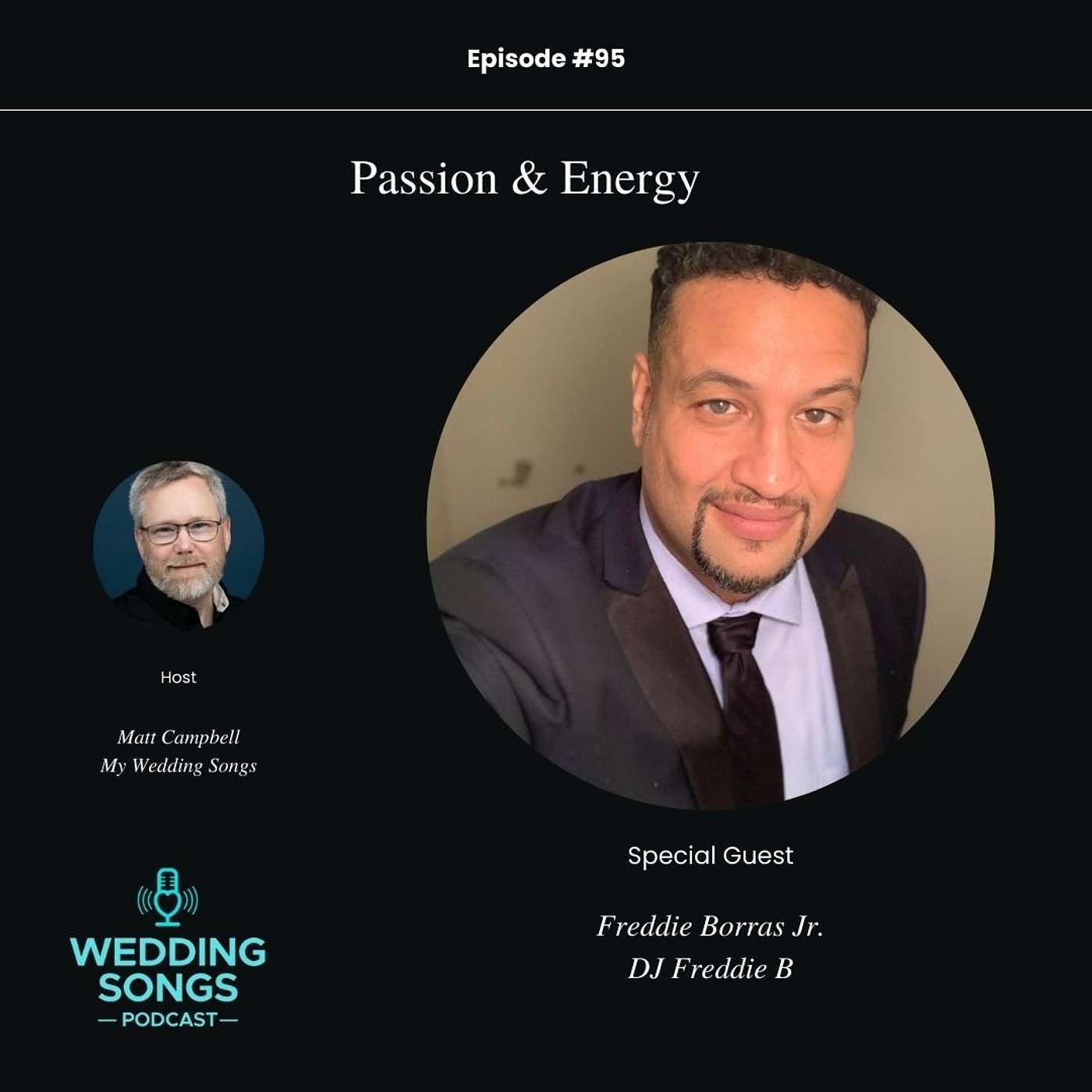 Freddie Borras Jr. of DJ Freddie B and Matt Campbell of My Wedding Songs sit down and chat about Passion and Energy and weddings. Show NotesMemorable Wedding MomentEnergy & Party LeaderFinding MyWeddingSongs.comMeet DJ Freddie BTeam EffortThe Wedding ExperienceBouquet/Garter TossesDo Not Play ListsInteractive DJPopular MusicPuerto Rican WeddingWedding ItineraryExplicit Lyrics SongsNonstandard HitWedding Couple Sets The ToneRegional HitsA Word About My Wedding SongsMy Wedding Songs is a resource of wedding song suggestions. Shop our books and planning guides including Wedding Pros - "The Wedding Songs Planner" and for Engaged Couples - "The Wedding Music Toolkit". Join 8k+ engaged couples/DJs/wedding pros on the weekly Wedding MusicLetter.