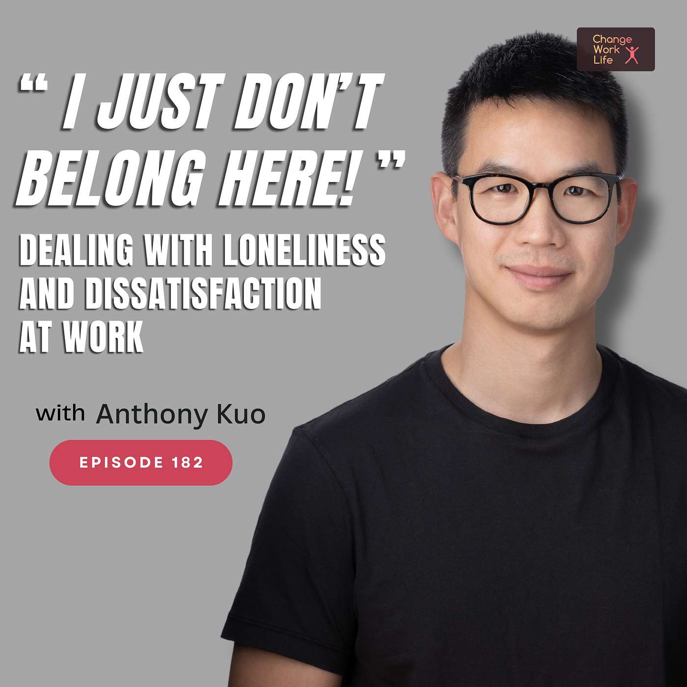 Questions? Comments? Episode suggestions? Send us a text message!#182: Anthony Kuo is a Career Satisfaction Coach, Executive Coach and Master NLP Practitioner. He explains the symptoms of work dissatisfaction, who to talk to when you feel isolated and alone and the achievability of career satisfaction.What you’ll learn[1:40] The constant search for what we want to be when we grow up.[4:45] What it’s like to be lonely at work.[9:35] Being disconnected from your work.[11:40] The symptoms of work dissatisfaction and the effect of being unengaged with your work.[15:00] Warning signs that you’re becoming dissatisfied with your work.[18:48] The biggest things that prevent people from change.[19:56] The importance of being able to bring your whole self to work.[22:45] What to do if you're being pigeonholed in the workplace.[27:00] Helpful ways to address feelings of dissatisfaction and loneliness.[32:22] How to save a job that you want to quit.[35:45] Who to talk to when you feel isolated and alone. [41:30] The achievability of career satisfaction.Resources mentioned in this episodePlease note that some of these are affiliate links and we may get a commission in the event that you make a purchase. This helps us to cover our expenses and is at no additional cost to you.“People prefer the certainty of misery to the misery of uncertainty”, Virginia SatirThe Subtle Art of Not Giving a F***, Mark MansonFor the show notes for this episode, including a full transcript and links to all the resources mentioned, visit:https://changeworklife.com/i-just-dont-belong-here-dealing-with-loneliness-and-dissatisfaction-at-work/Re-assessing your career? Know you need a change but don't really know where to start? Check out these two exercises to start the journey of working out what career is right for you!