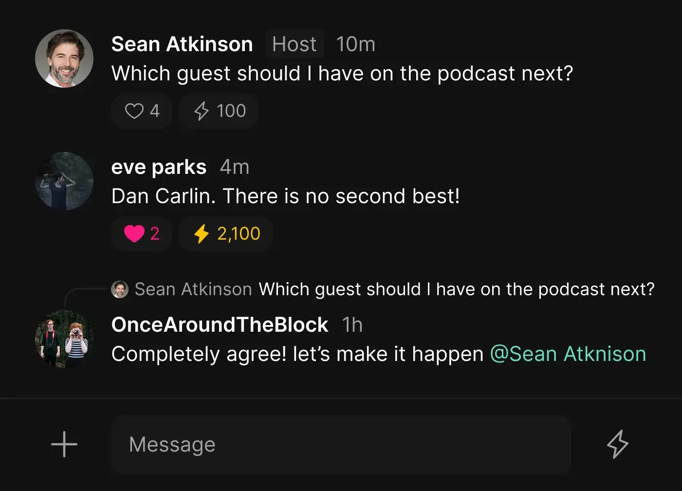 The pioneer of podcasting (a.k.a "The Podfather) uses Fountain for the show he hosts with his wife, Tina. Their top three supporters have sent over $5000 between them.