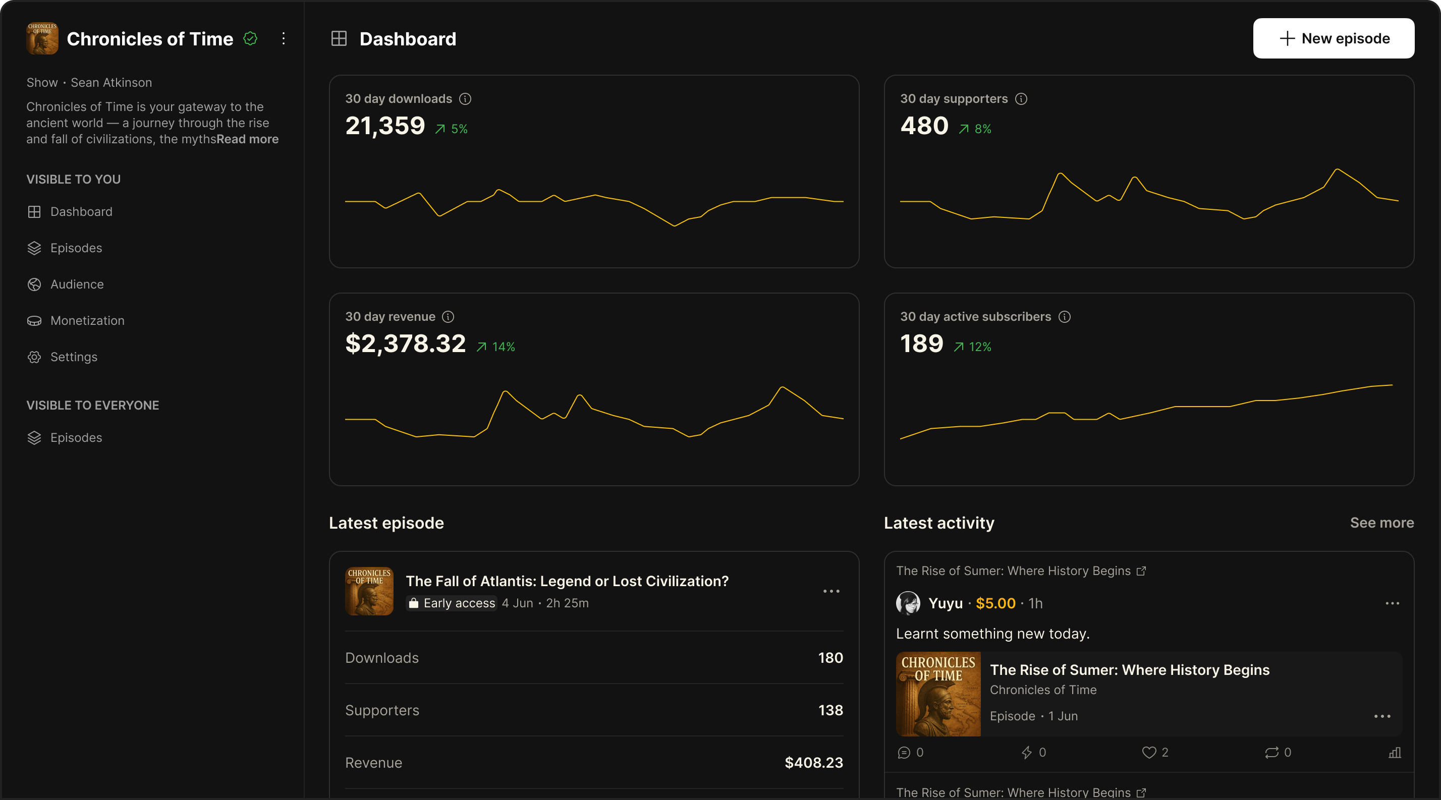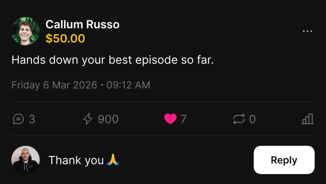 Chris is already earning $10,000+ a year on Fountain since launching in 2024. Subscribers pay for bonus episodes, which drives a third of his monthly revenue.